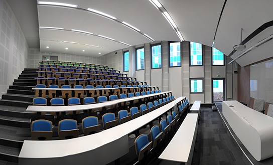 Dotées de 5 500 m² (HAA) et de 6 400 m² (SES), les nouvelles UFR offrent un cadre de vie accueillant et stimulant à leurs usagers. Grand confort thermique et acoustique, luminosité naturelle optimisée, façade vitrée occultable, climatisation et chauffage optimisés, patios verdoyants, tablettes en bois et sièges en tissu dans les amphis… tout a été pensé pour favoriser la concentration, le partage des connaissances et le bien-être de chacun mais aussi les économies d’énergie grâce aux hautes performances énergétiques du bâtiment.