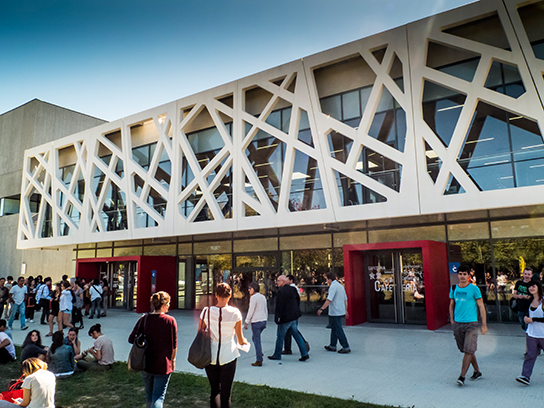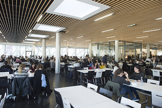Bâtiment clair, convivial, spacieux et lumineux, l’Arum accueille une cafétéria ouverte sur les jardins de l’université, et deux salles de restaurant réparties autour d’un espace libre-service.